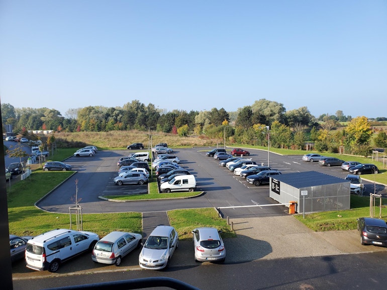 A car park with electrical terminals and a locked bicycle room. All roads lead to Rome but also to us: in the event of a strike you will see that there will always be one path unblocked.